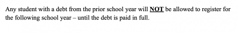 All families must register with FACTS Tuition Management. FACTS registration information will be provided separately. All missed payments will be assessed a $25 late fee the month that a payment is not made in full by the due date. If a second payment is also not paid by the due date, parent(s) will be asked to meet with the school to discuss financial arrangements and/or withdrawal of their students. Any student with a debt from the prior school year will NOT be allowed to register for the following school year – until the debt is paid in full.
